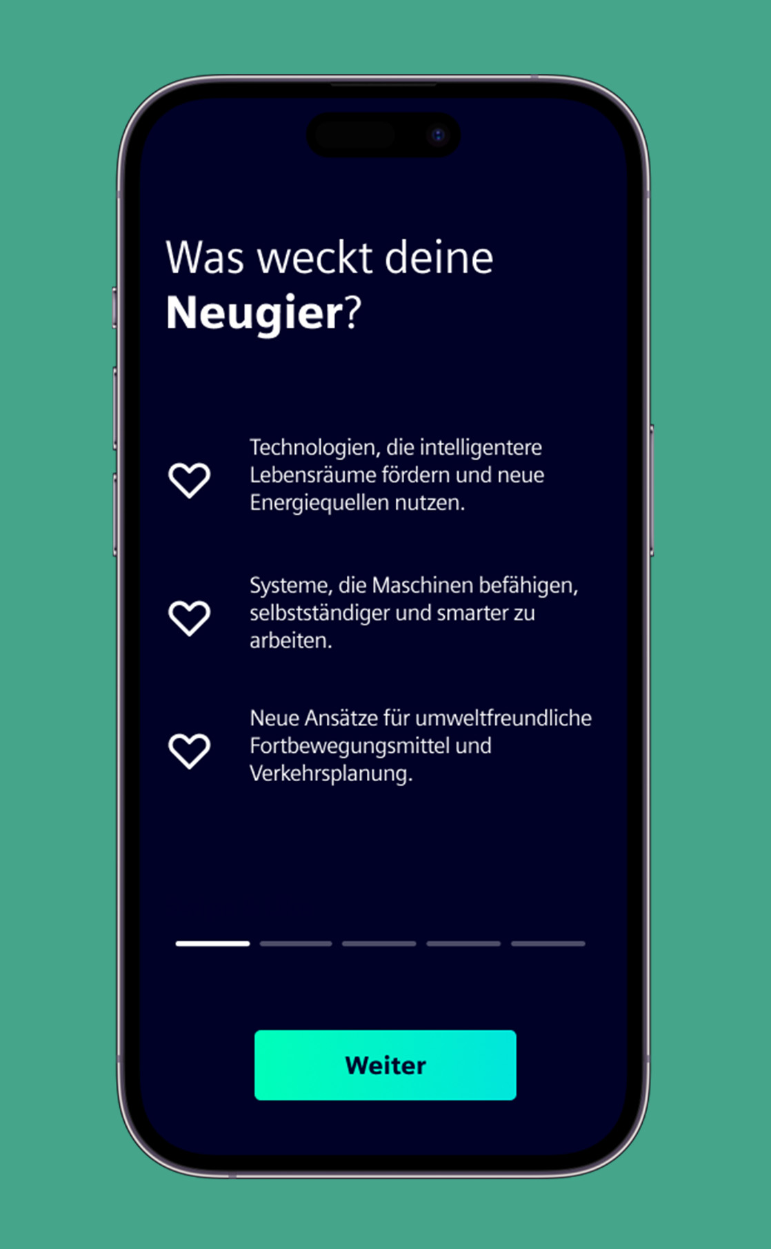 It all starts with a few gamified questions – “Who are you?” “What are you into?” – presented Tinder-style. Then comes the scrollable daily feed: bite-sized videos, animated SVGs, and likeable moments that spotlight Siemens’ massive vertical reach. At the end, tailored job matches are delivered like a personal recommendation – plus a cheeky CTA to “meet your match” and sign up for more.