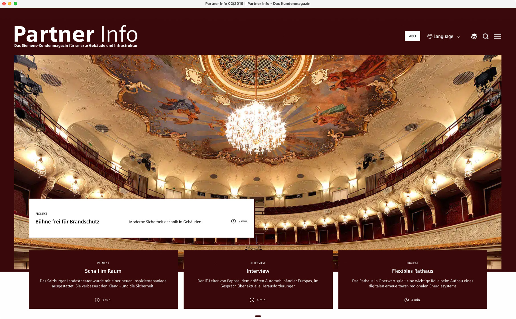 Partner Info is Siemens Austria’s long-running customer magazine, focused on smart infrastructure and building tech. We redesigned the online version from the ground up – making it feel like a magazine, but work like the web.