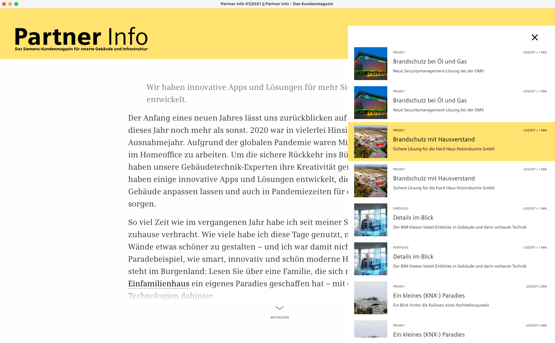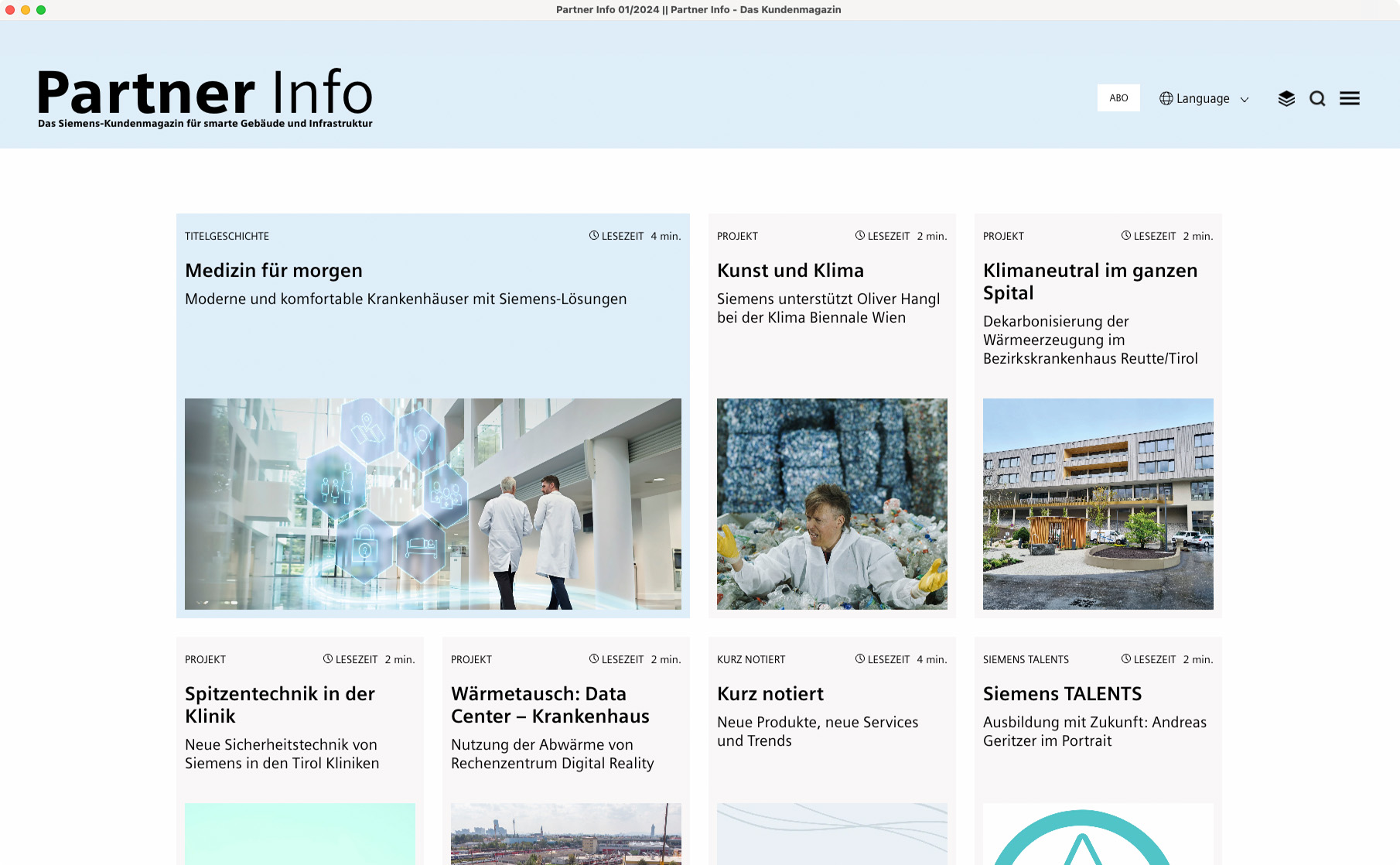 Partner Info is Siemens Austria’s long-running customer magazine, focused on smart infrastructure and building tech. We redesigned the online version from the ground up – making it feel like a magazine, but work like the web.