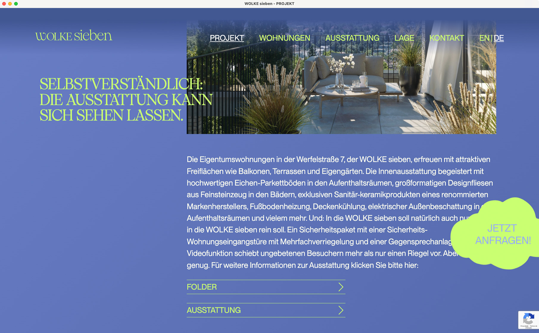 The result? A website that doesn’t just promote a property – it makes you want to live there. Leads go to the right agent. Pages load fast. Apartments look great. And every visitor gets the same feeling WOLKE 7 promises: this might just be the one.